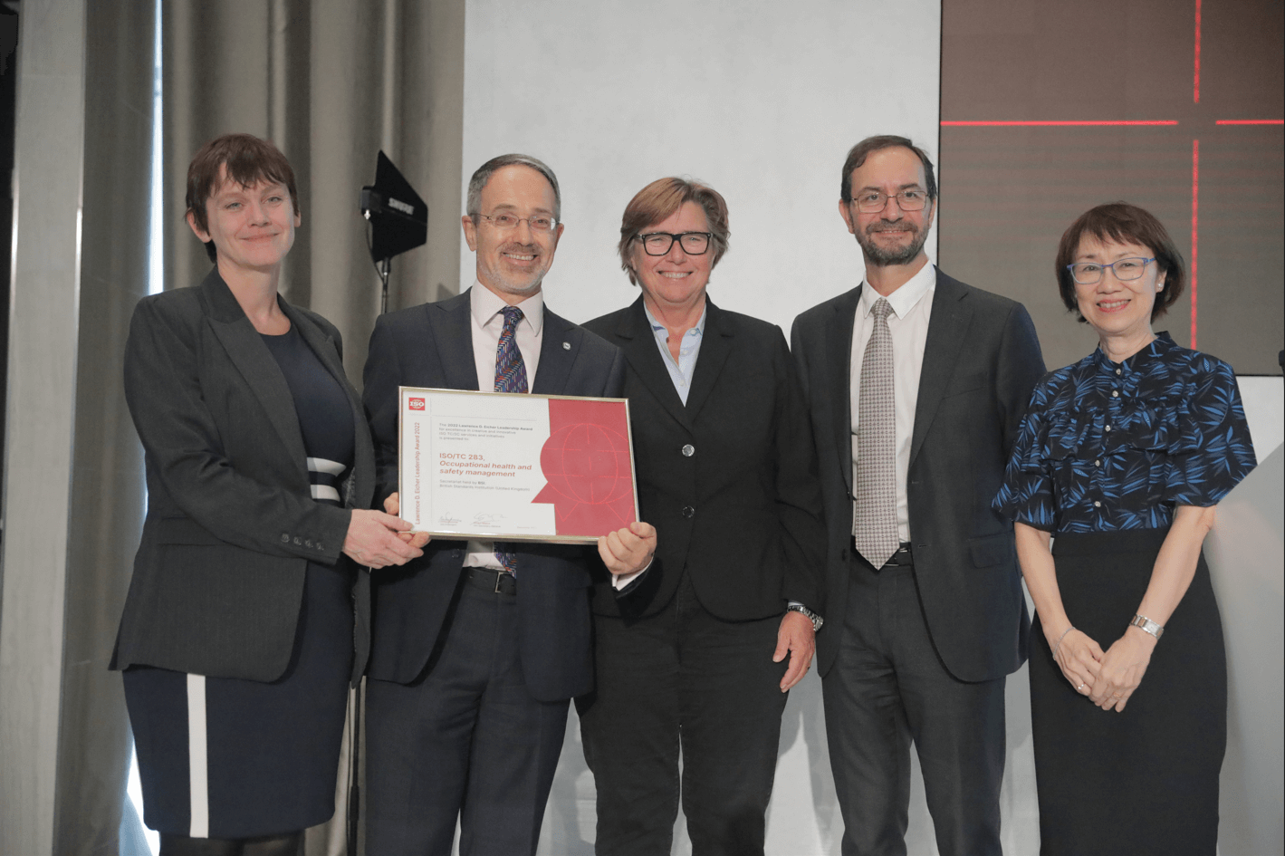 The work of ISO/TC 283, the ISO committee for Occupational Health and Safety Management, has been recognised with the prestigious Lawrence D. Eicher Award 2022. The award was presented by Ulrika Francke, ISO President and Sergio Mujica, Secretary General, at the ISO General Assembly in Abu Dhabi on 22nd September.